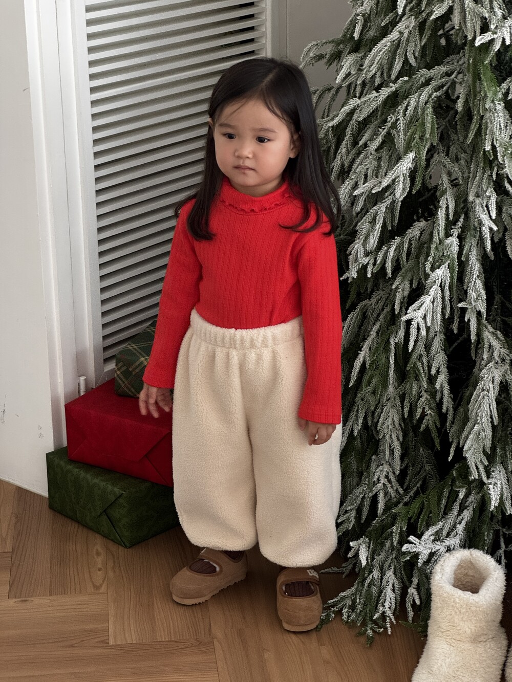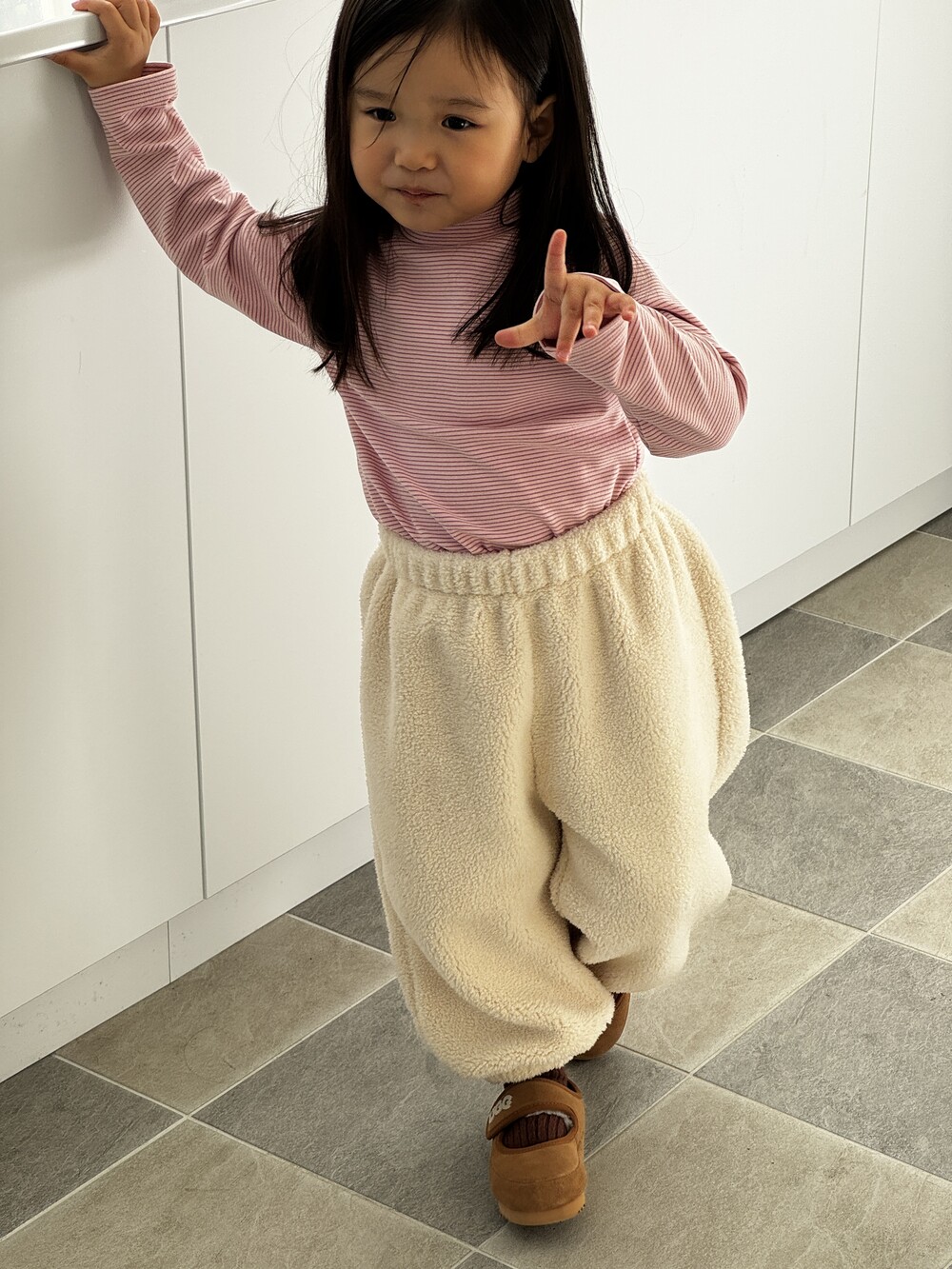 국내 생산된 양면보아털 원단으로 제작된 크리미팬츠는 폭닥하고