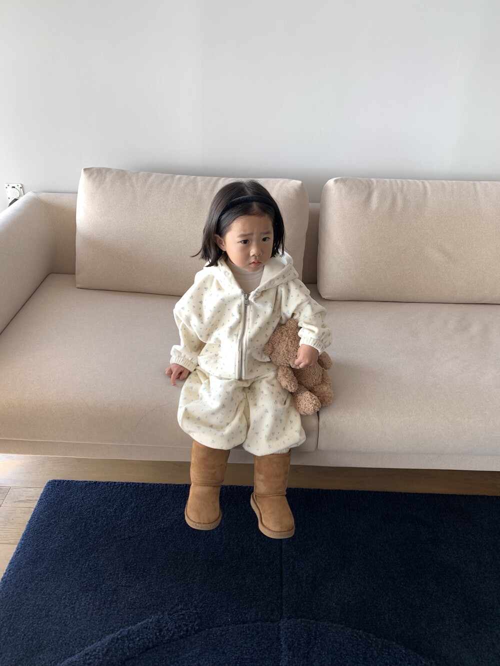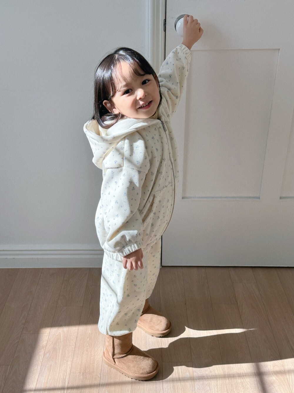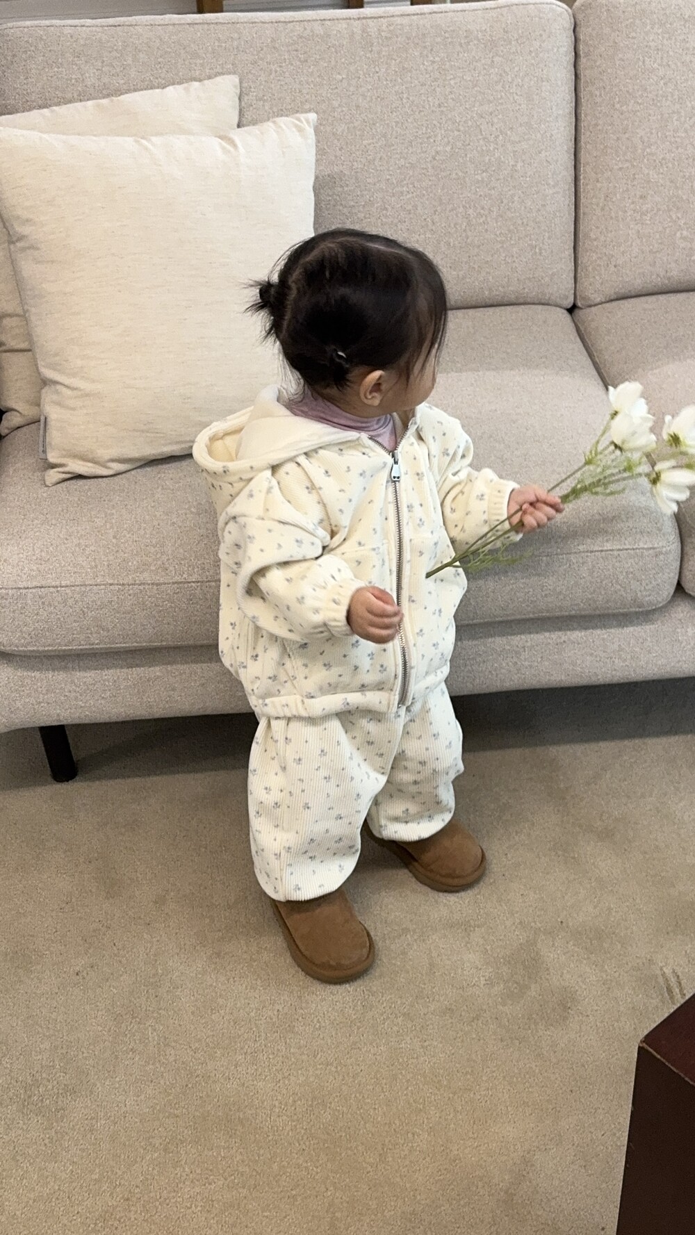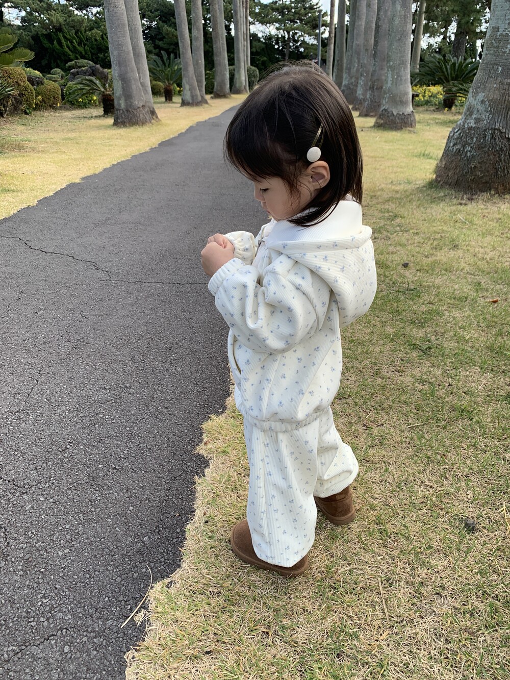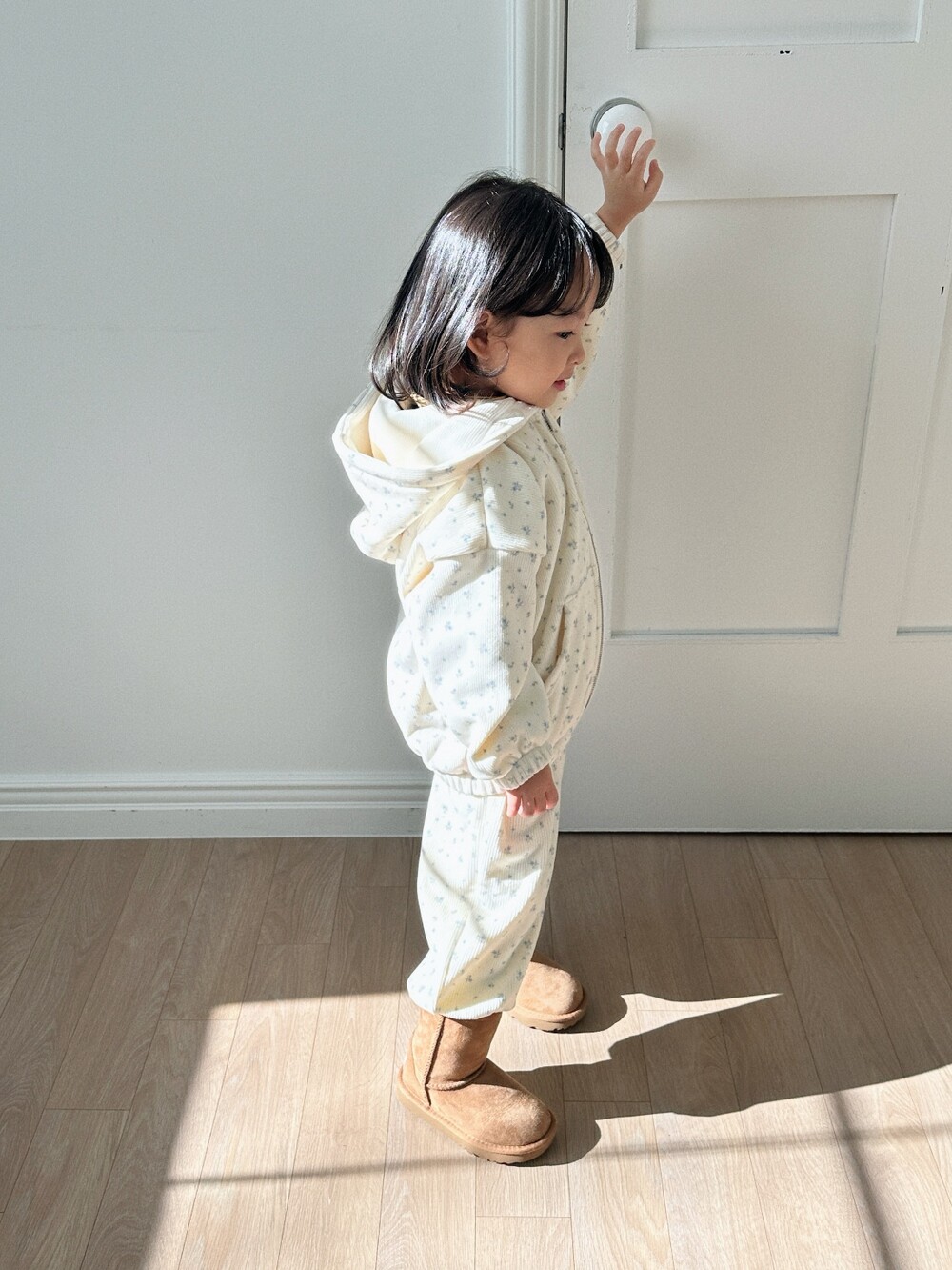 윈터플로럴 집업과 조거 팬츠 간에 미세한 색상 차이가 발생할 수 있습니다. 받아보시는 데 참고 부탁드립니다.