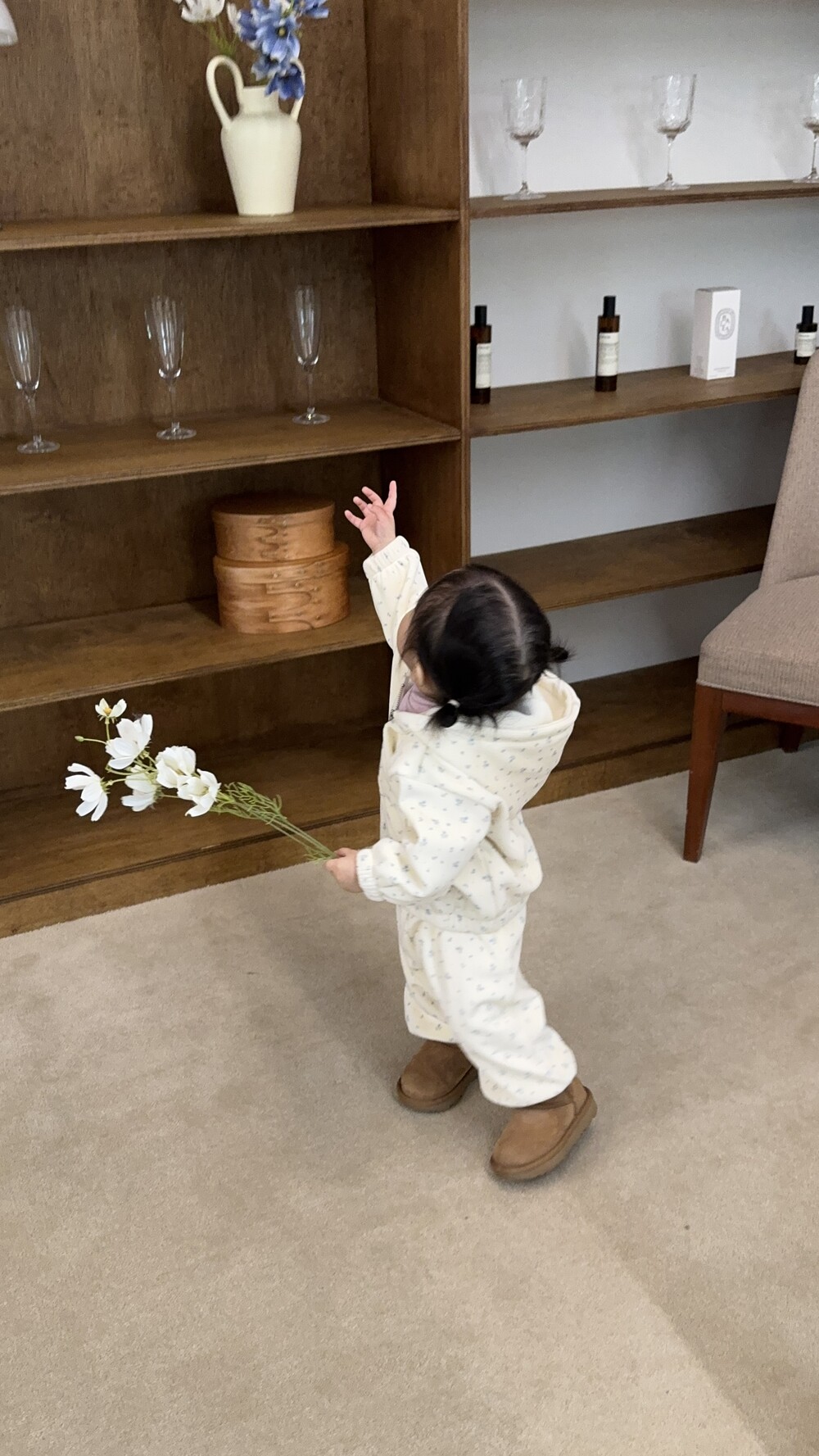 윈터플로럴 조거 팬츠와 함께 매치하면 조화로운 윈터 셋업 룩이 완성되어 겨울 여행룩으로도 잘 어울립니다.