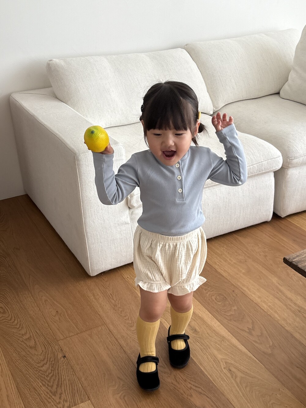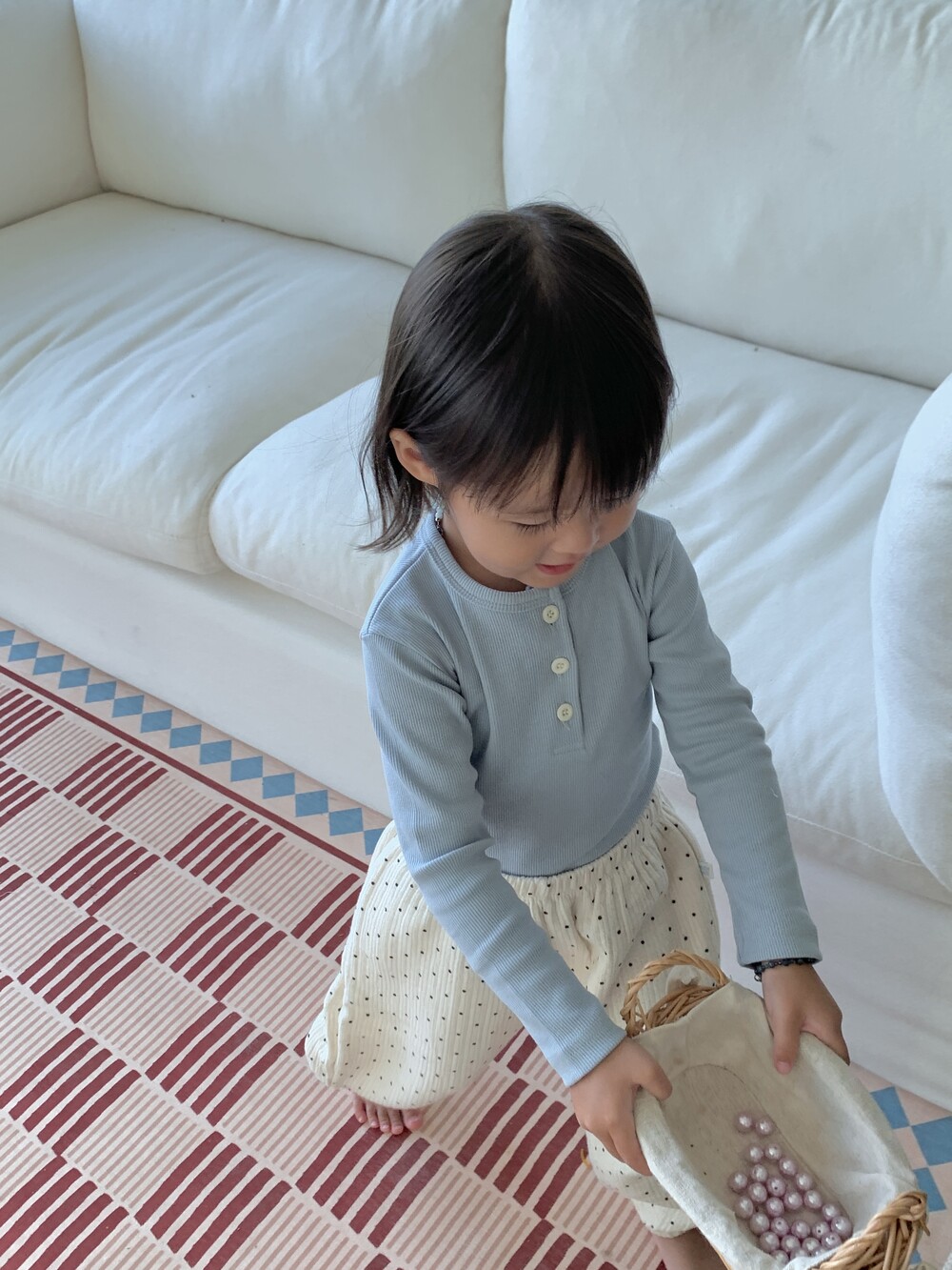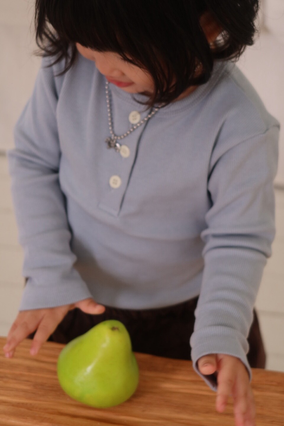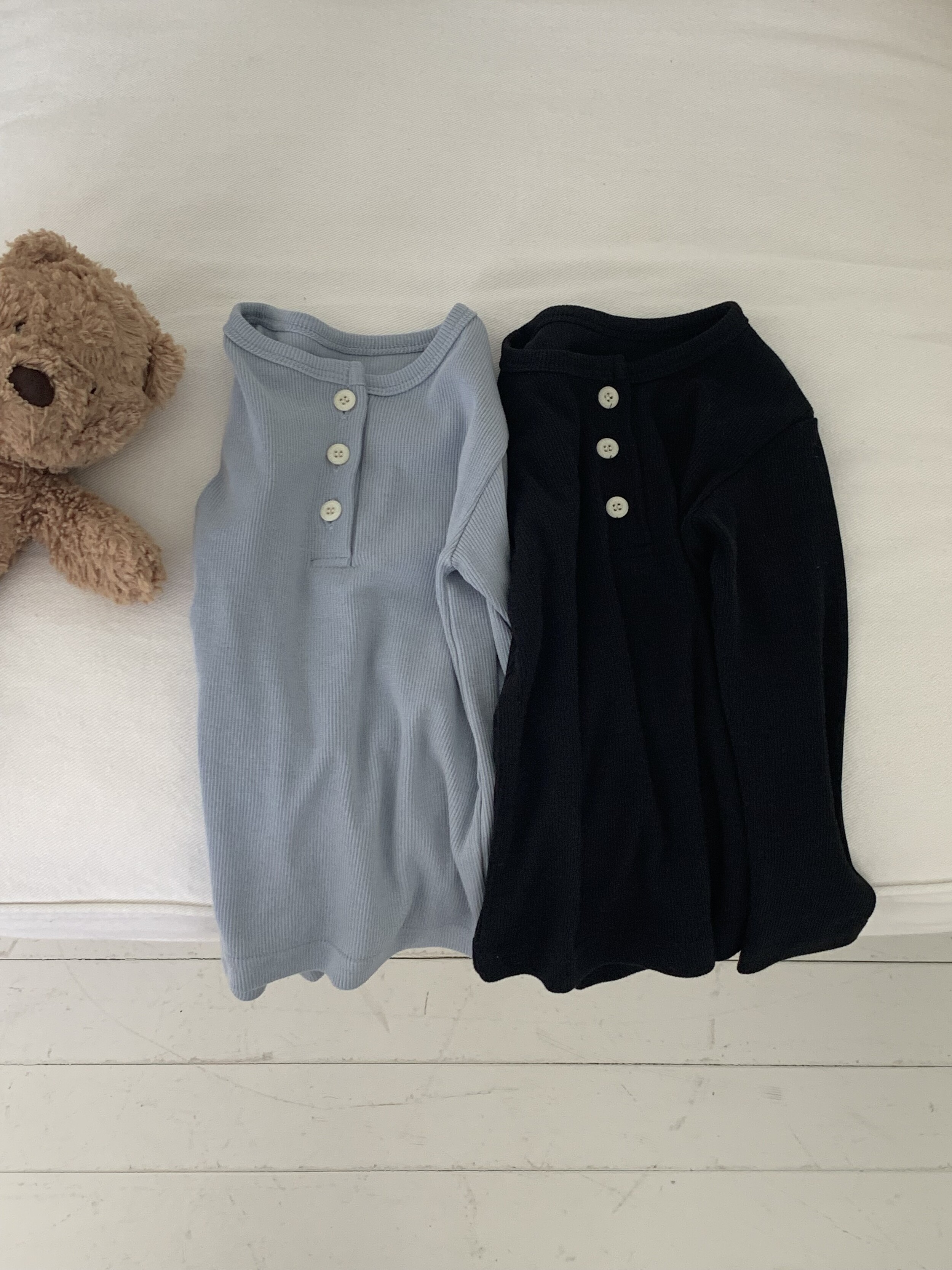 쫀쫀하고 탄탄한 골지 스판 소재로 제작된 플레인 티셔츠입니다. 적당한 두께감으로 봄, 가을에는 단독으로 입기 좋고, 한겨울에는 이너로 활용하기 좋은 아이템입니다. 프레앤프레 로고가 새겨진 단추 3개가 포인트가 되어 깔끔하고 단정한 무드를 더해줍니다.