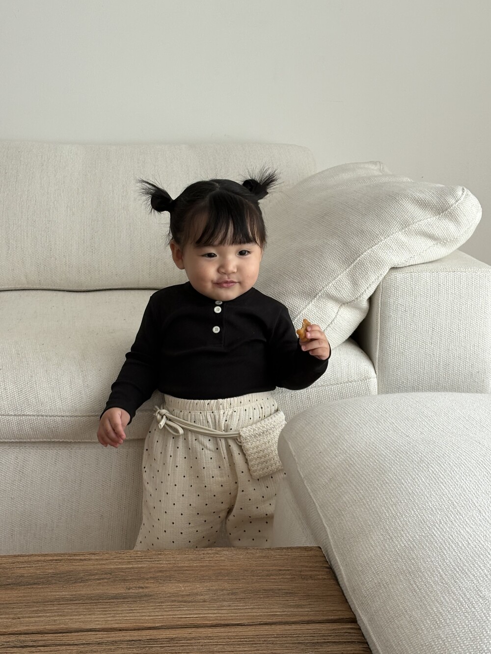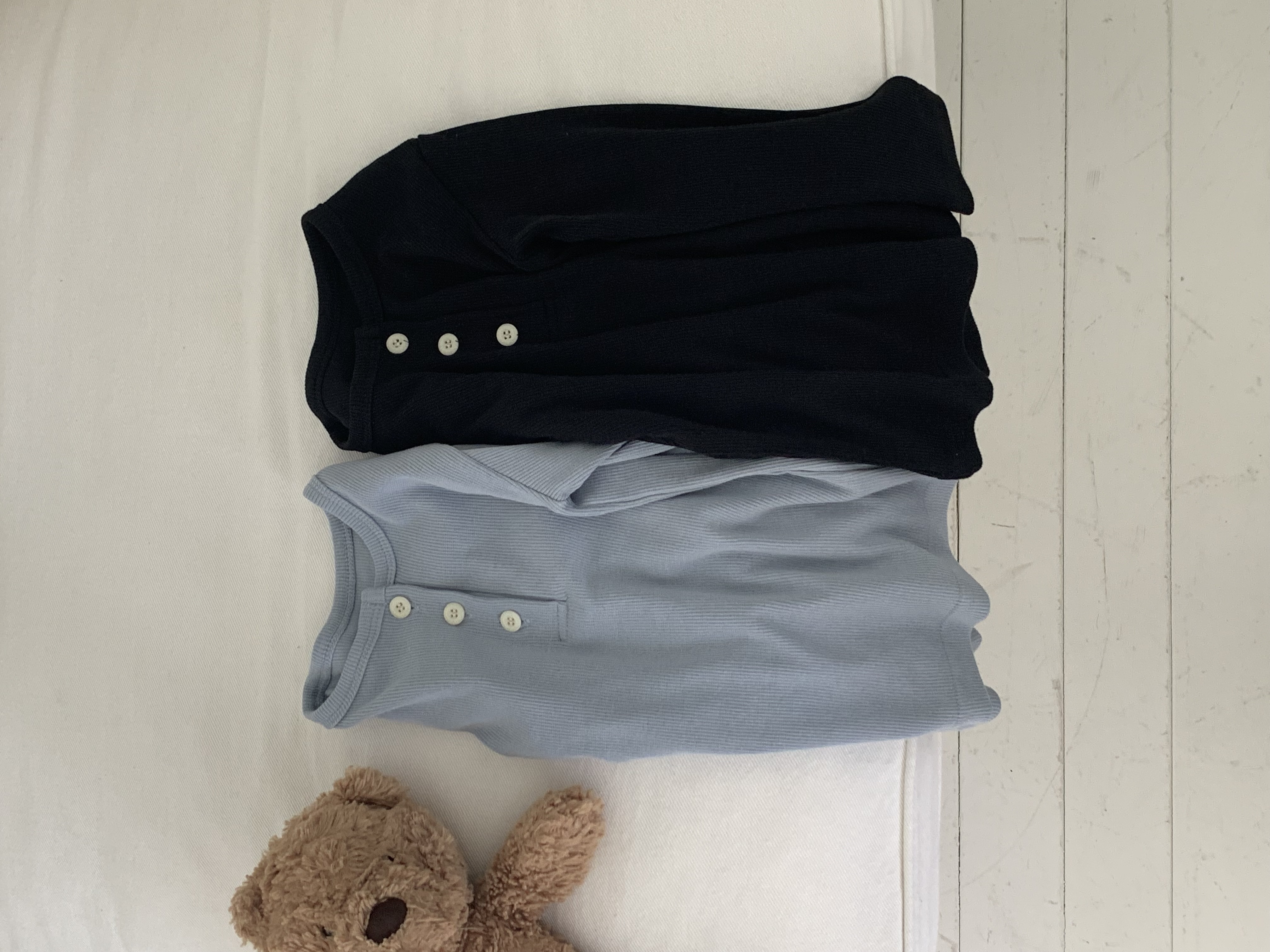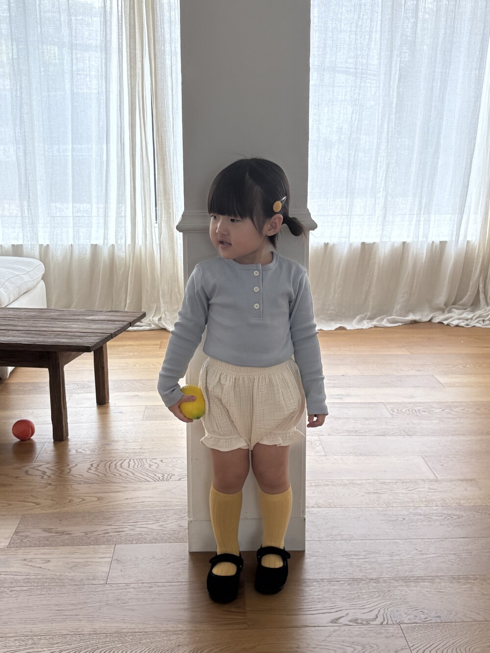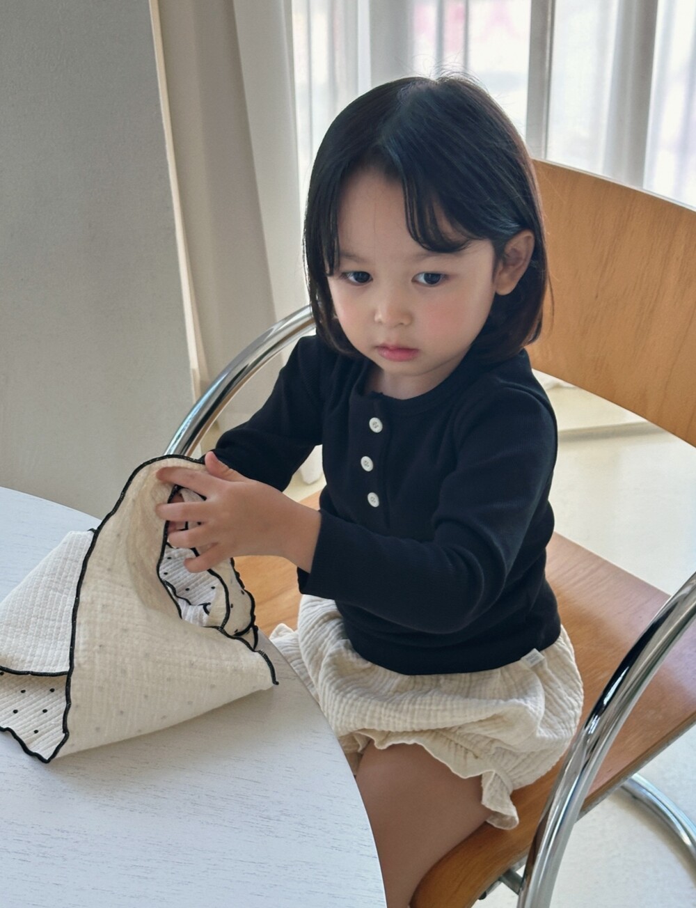 쫀쫀하고 탄탄한 골지 스판 소재로 제작된 플레인 티셔츠입니다. 적당한 두께감으로 봄, 가을에는 단독으로 입기 좋고, 한겨울에는 이너로 활용하기 좋은 아이템입니다. 프레앤프레 로고가 새겨진 단추 3개가 포인트가 되어 깔끔하고 단정한 무드를 더해줍니다.