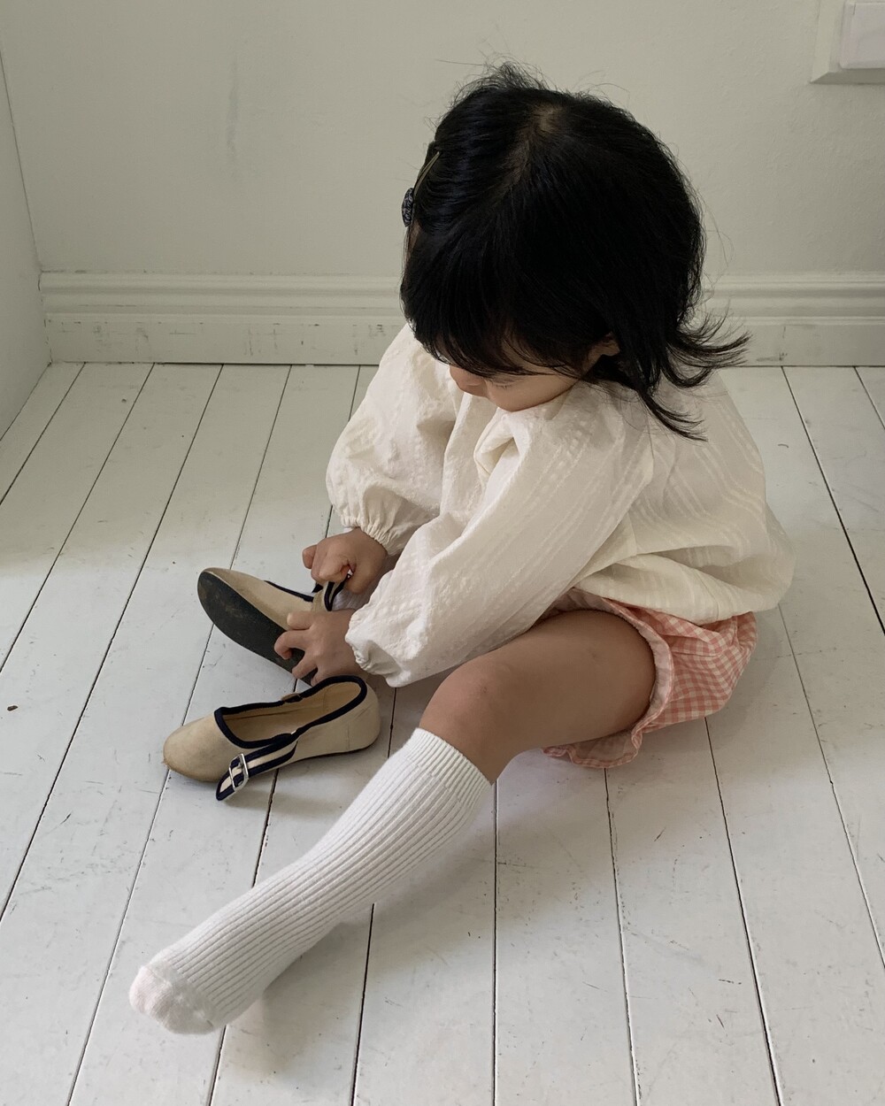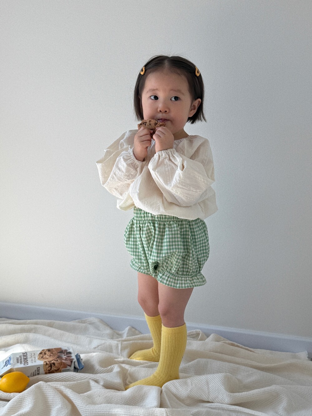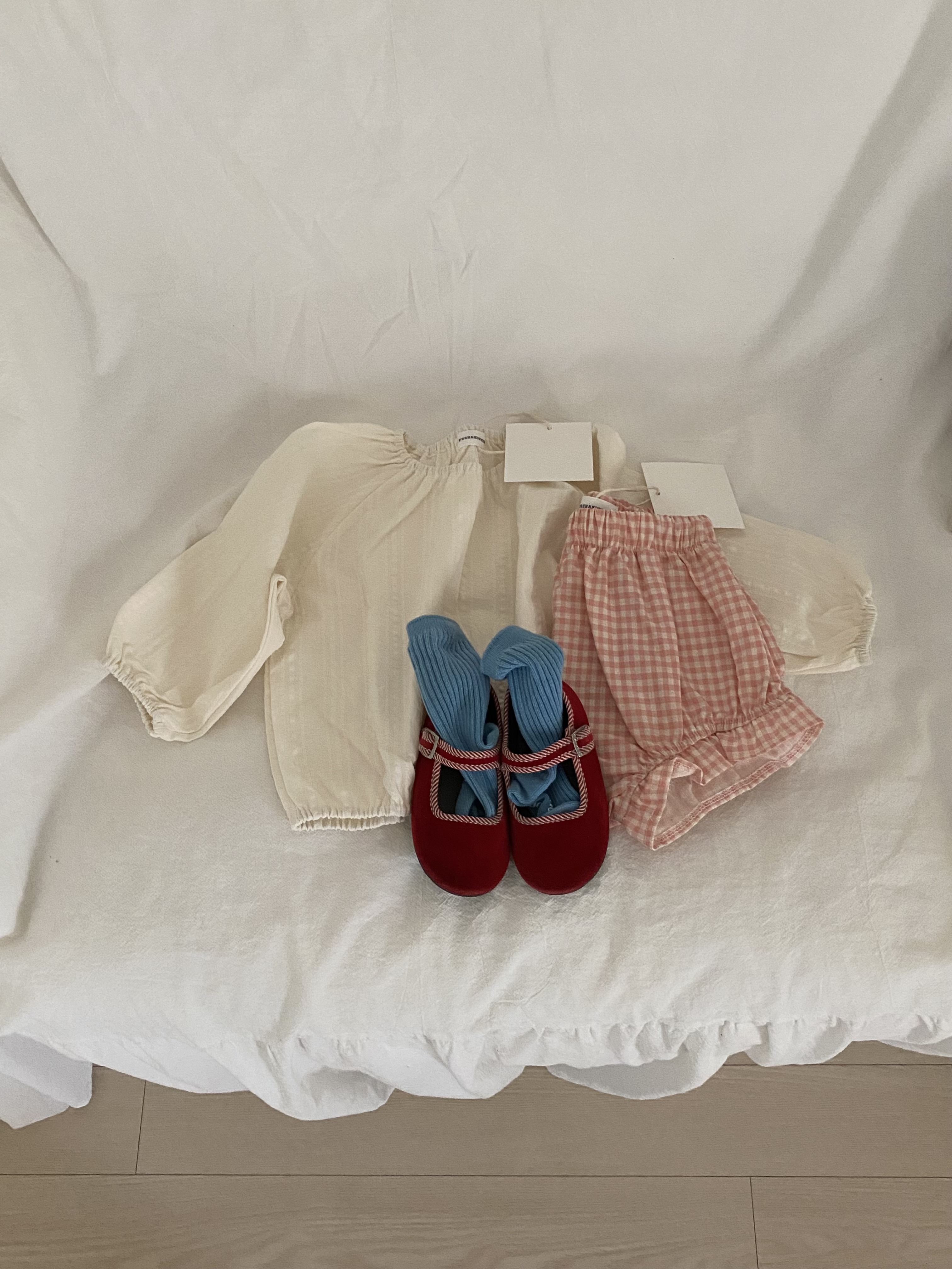 사랑스러운 체크 패턴이 돋보이는 블루머입니다.