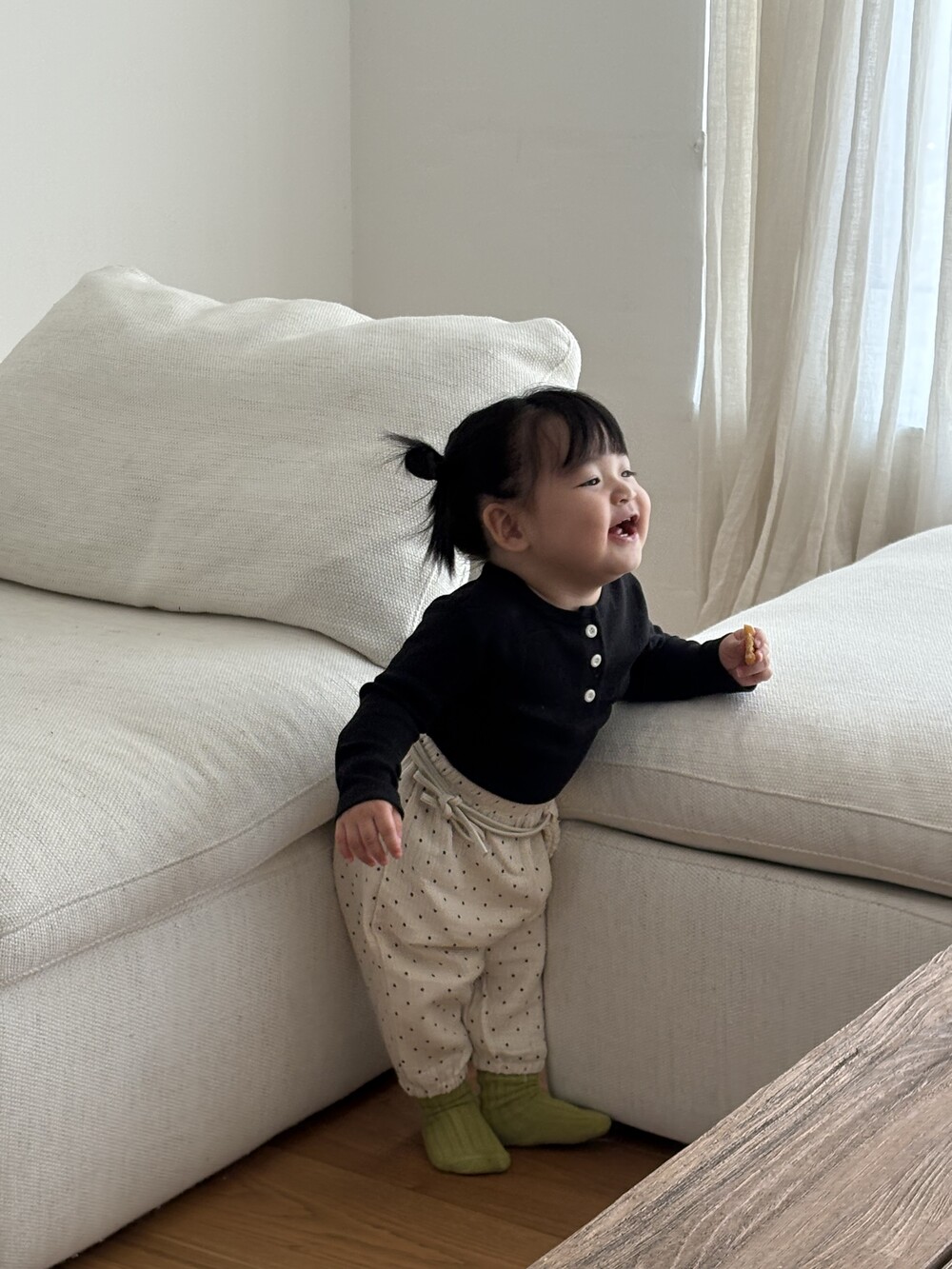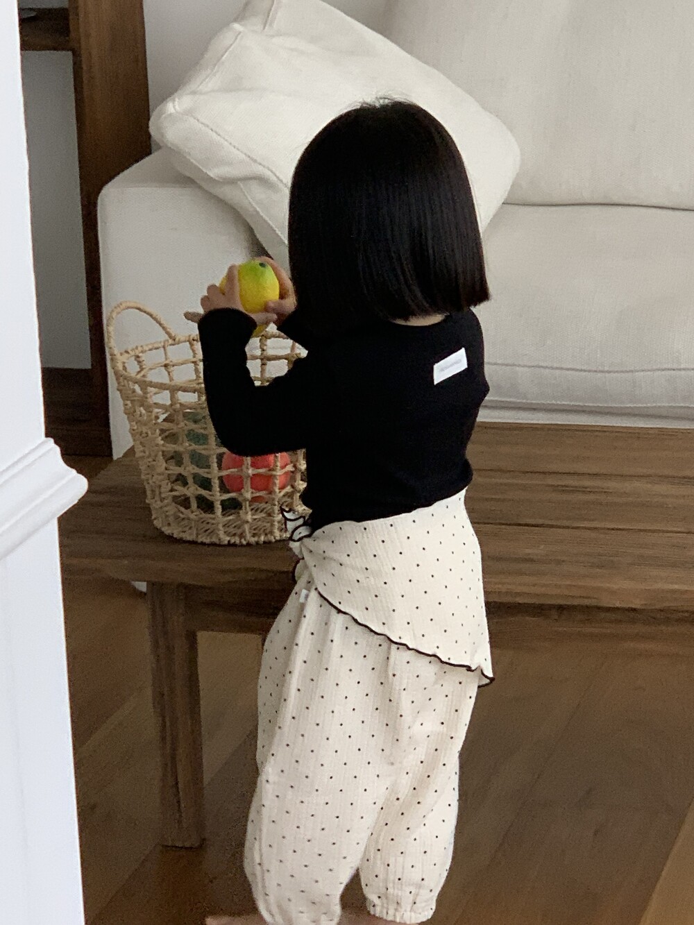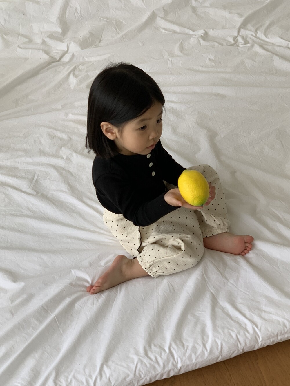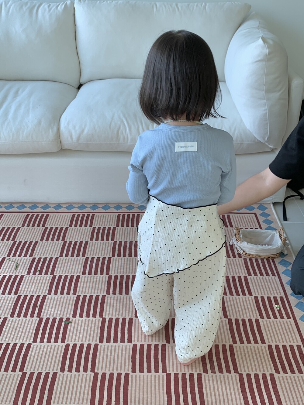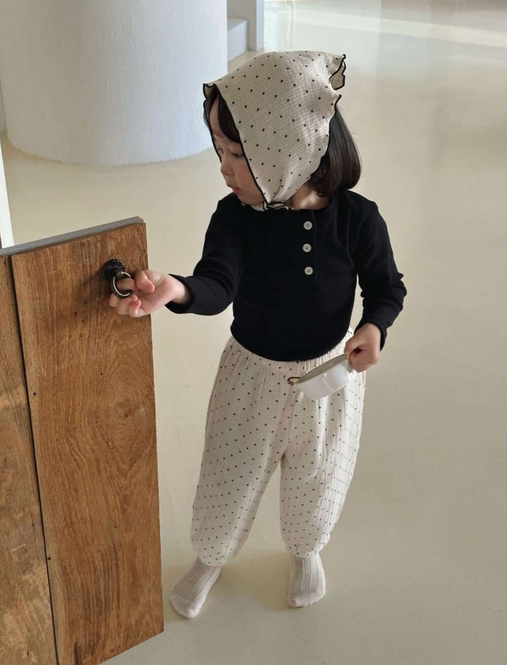 삼중 골지거즈소재로 톡톡한 질감이 돋보이는 도트 팬츠입니다.내구성이 좋아 데일리 아이템으로 활용하기 좋습니다. 국내에서 생산된 삼중 골지거즈에 은은한 도트 패턴을 더해 특별함을 담았으며, 사계절용으로 한여름과 한겨울을 제외하고 착용하기 적합합니다. 부드럽고 편안한 착용감과 적당히 볼륨있는 핏이 귀엽게 연출 됩니다.